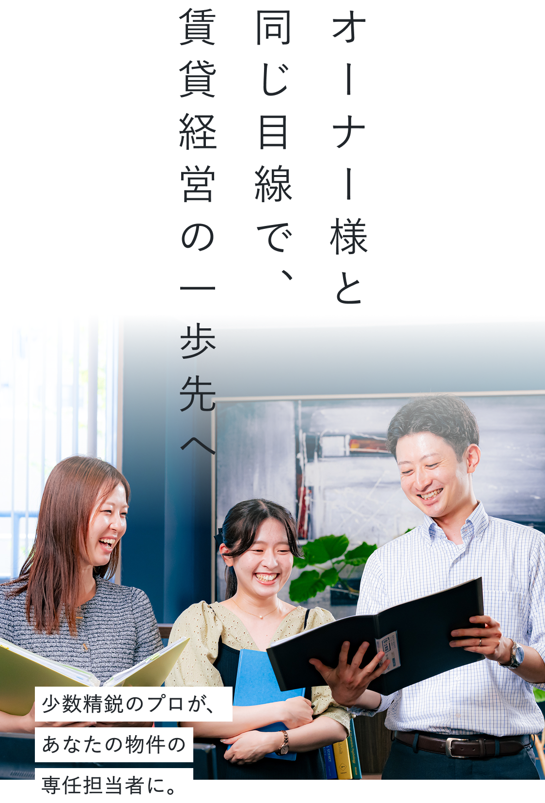管理・募集・サポートまで一括対応だから、賃貸経営はもっとスムーズに。