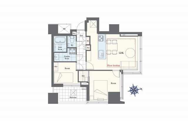 15階部分に位置する新規リノベーション済みの2LDK住戸。開放感溢れるメインルームのコーナーサッシからは、都心のシンボル「東京タワー」を望む贅沢な眺望が広がります。