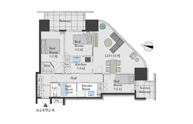 開放感溢れる眺望をお楽しみいただける、南東向き角住戸住戸。ウォークインクローゼット付きの3LDKです。